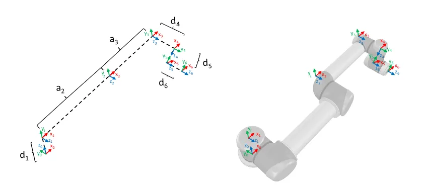 A continuación se muestran los parámetros Denavit-Hartenberg del robot UR5e: